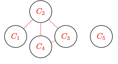 \[ \begin{array}{l} \text{Binary Constraints} \\ C_1 \ne C_2 \\ C_2 \ne C_3 \\ C_2 \ne C_4 \\ C_3 \ne C_4 \end{array} \]