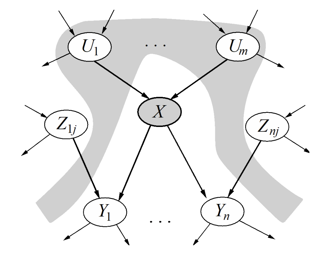 A variable’s Markov blanket consists of parents, children, and children’s other parents.