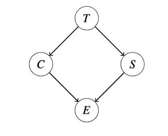 - Sum out C from this new factor, leaving us with a new factor \(P(+e|T, S)\).