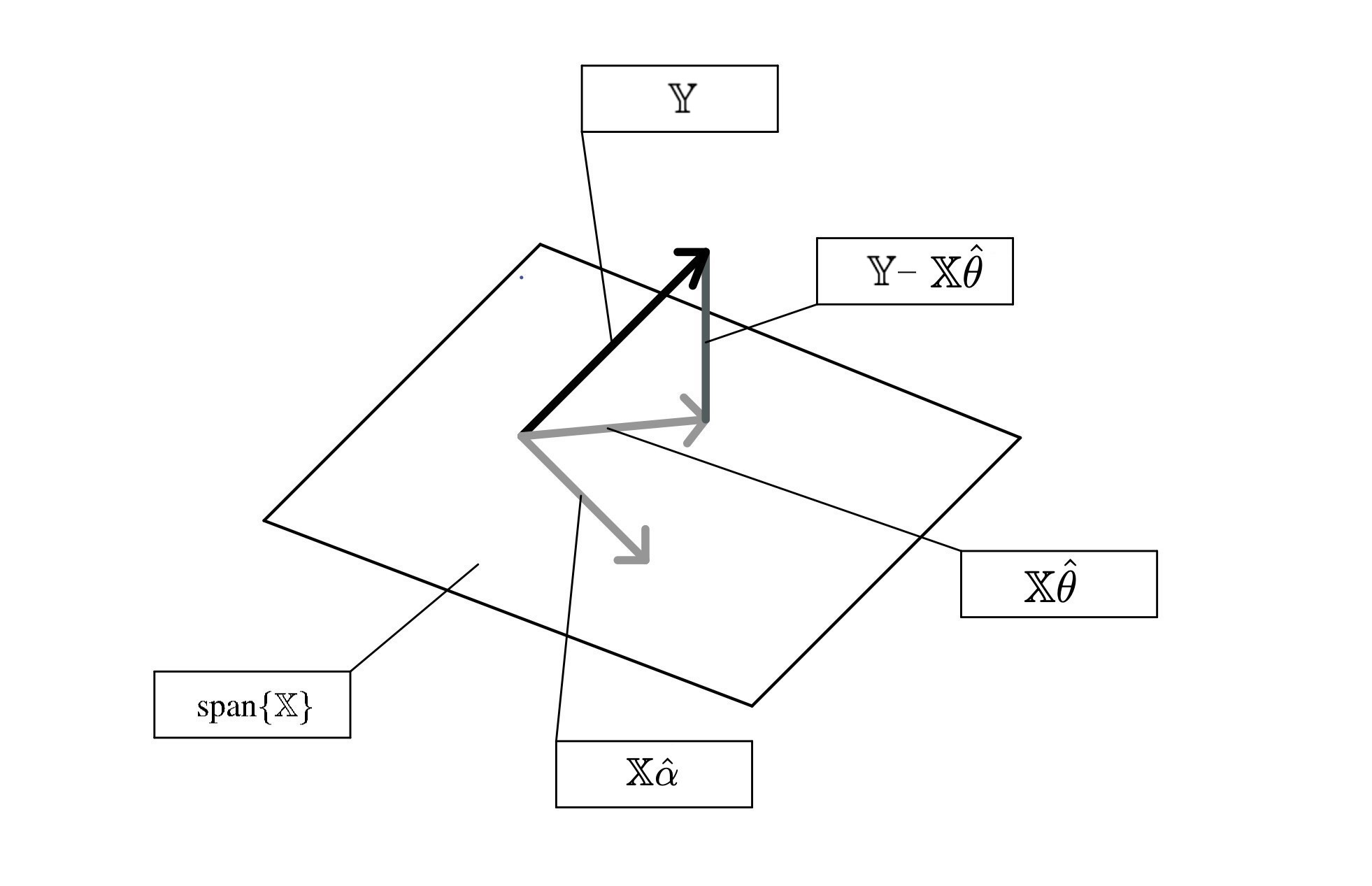 - The residual vector \(\mathbb{Y} - \mathbb{X}\hat{\theta}\)