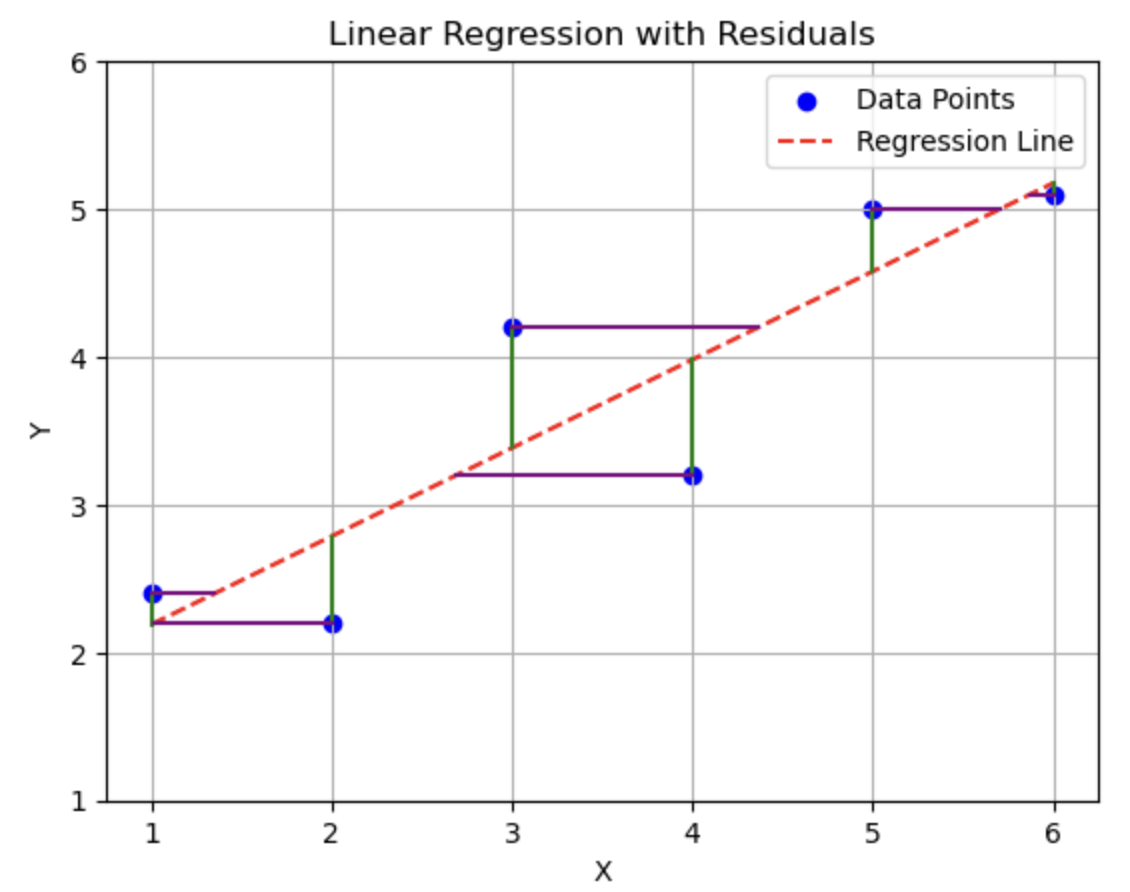 Key takeaway: Minimizing squared residuals in different directions gives different slopes. Always choose the regression direction based on what you want to predict.