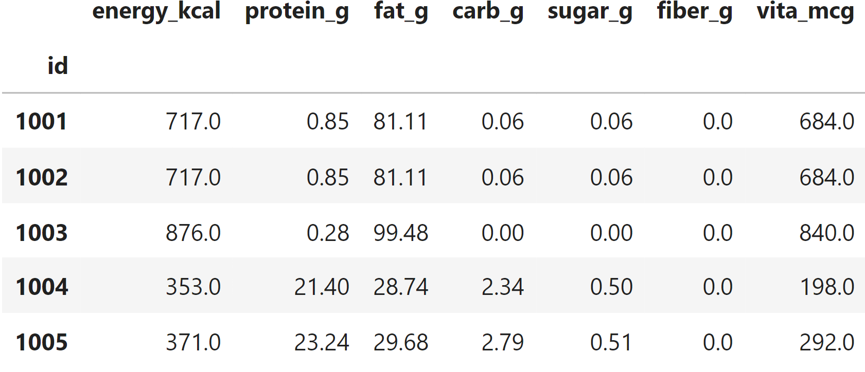 Minoli wants to apply PCA to food_PCA, a dataset of food nutrition information to understand the different food groups.