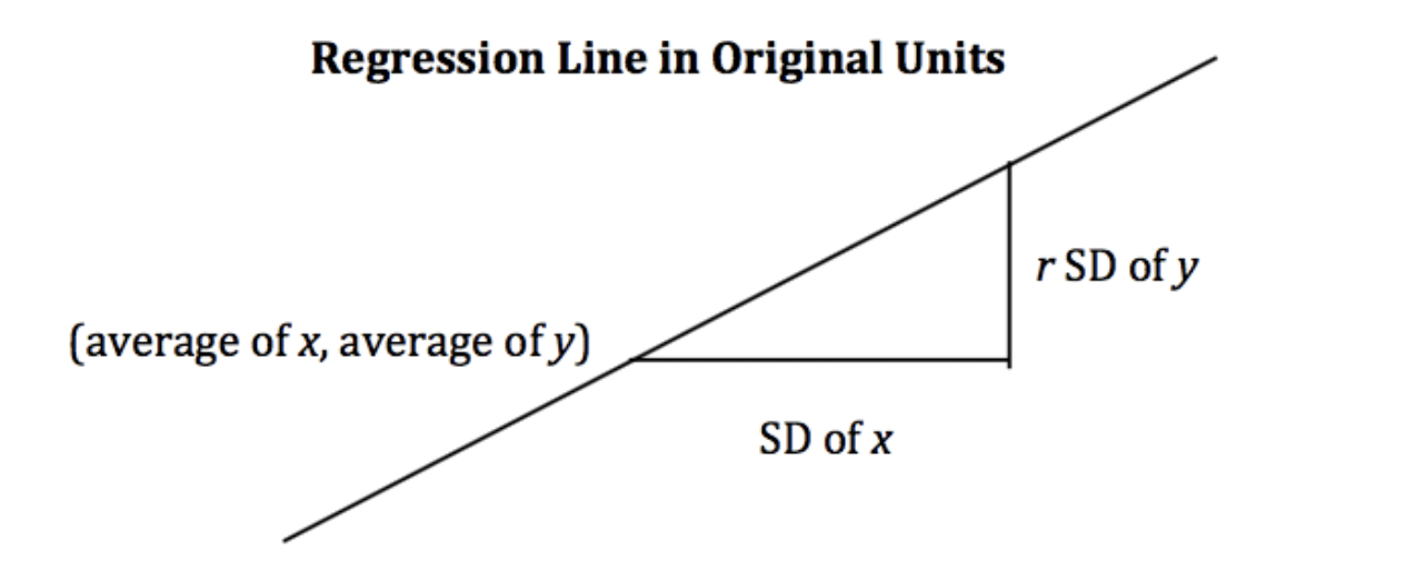 When in standard units, the slope of the regression line is just \(r\), and the intercept is always zero.