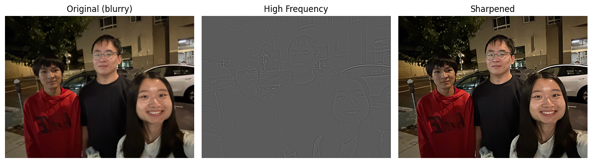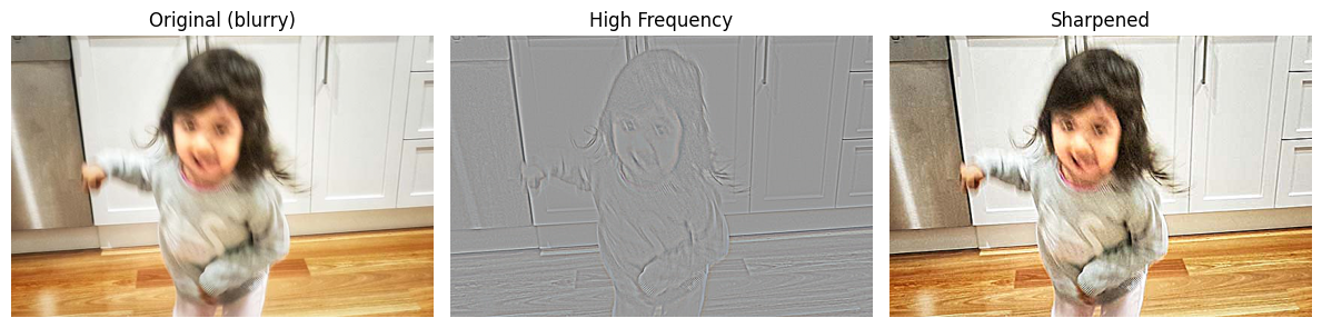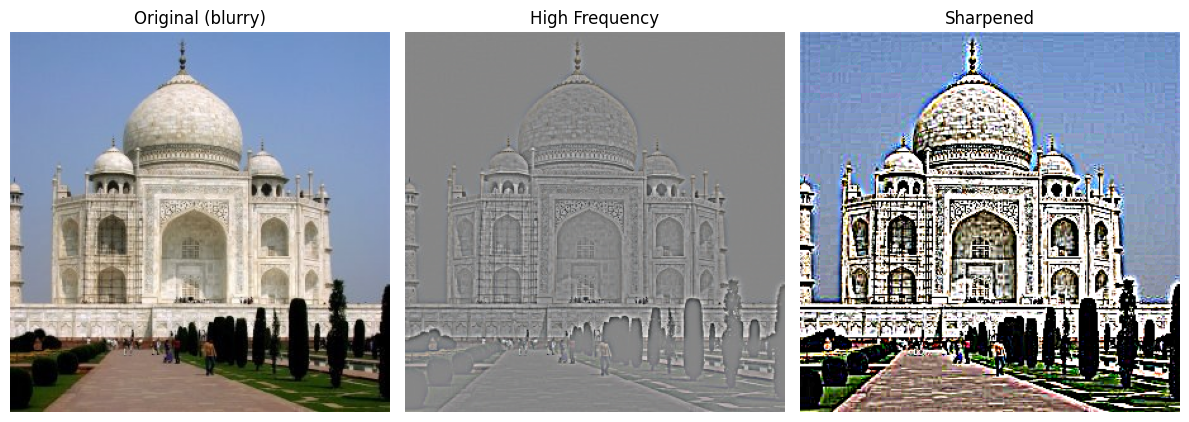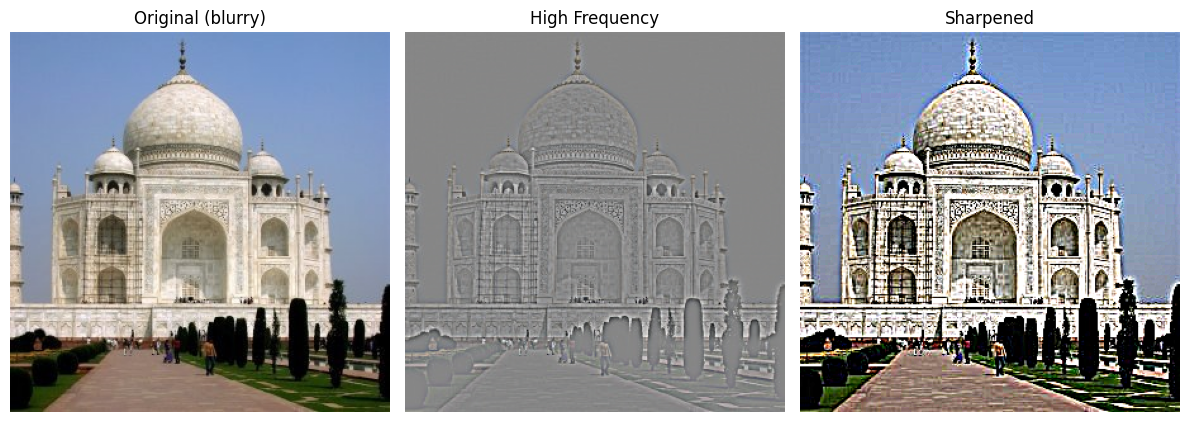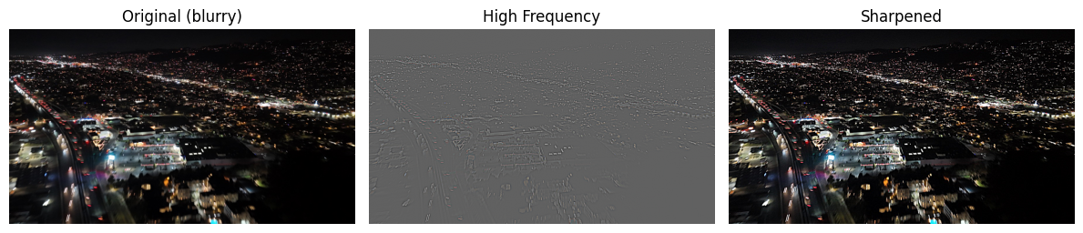 - This happens because sharpening extracts high-frequency details from the blurred image and adds them back.