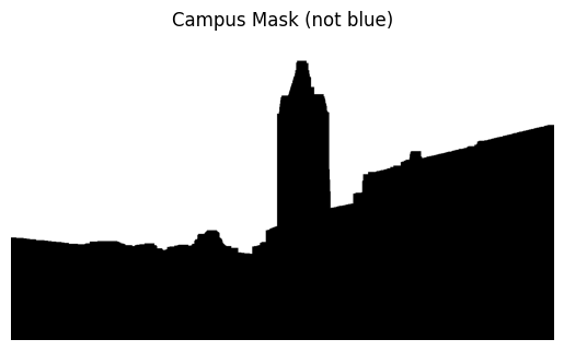 More specifically, once my algorithm determines that, for a particular x-value, some y-value is the border between everything that is not the sky and the sky, it declares anything above that border as white and everything below as black, producing a new mask. This results in a cleaner, more structured mask.