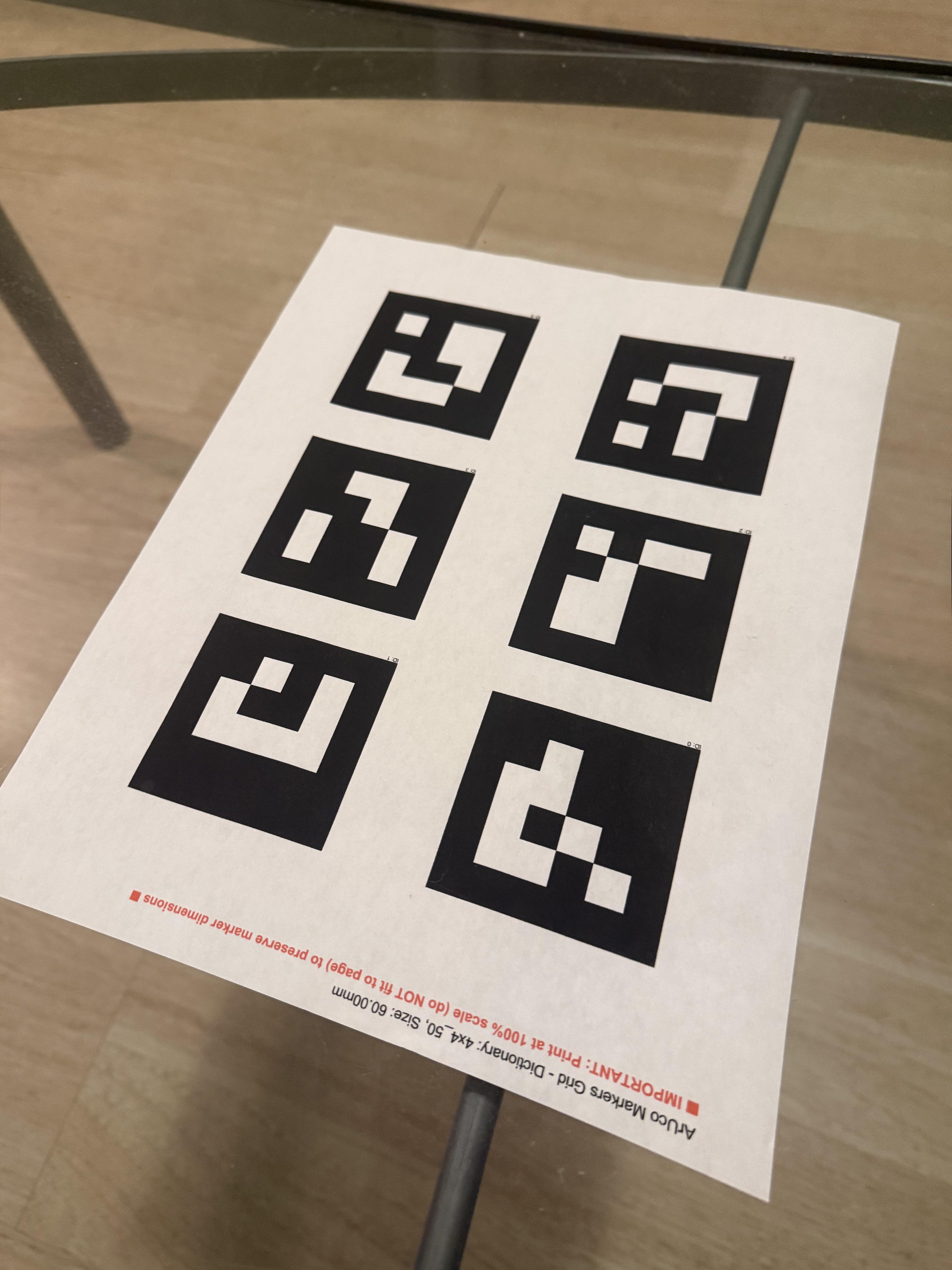 Note that in contrast, I am using a single ArUco tag, while the course staff is using 6 of them on a single piece of paper. This is intentional, as we were instructed that way.
